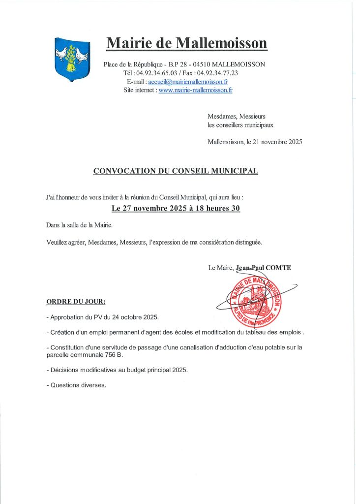 Fermeture du bureau de Poste de MALLEMOISSON ce mercredi 15 octobre pour raison sanitaire Réouverture jeudi 16 aux horaires habituels.
