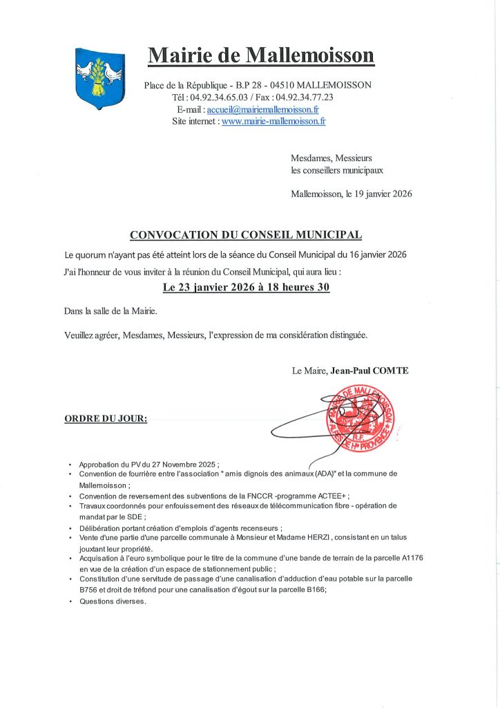 CONSEIL MUNICIPAL DU 23/01/2026