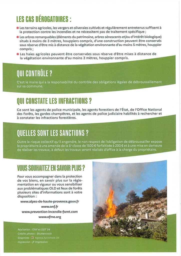 OBLIGATION LÉGALES DE DÉBROUSSAILLEMENT